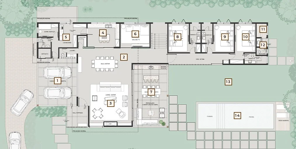 A Habit e a Seiji já construiram 14 casas no Haras Larissa. Mandarina Arquitetura já projetou 6 casas no Haras Larissa. Todas estas obras constituem referências de projetos consagrados entre os condôminos e frequentadores do Haras Larissa.